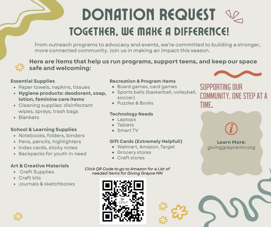 Your support helps us provide programs, mentorship, and fun activities for youth in our community. Every donation—big or small—helps a young person learn, grow, and thrive. Or interested in supporting by donating supplies? See our list of items you can donate